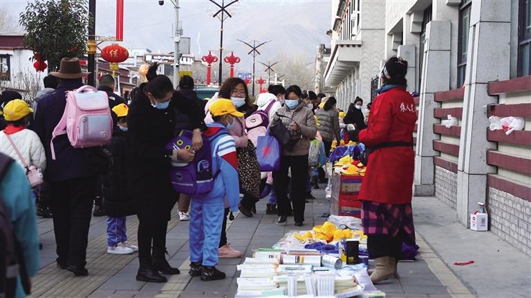 “為了迎接學(xué)生返校,學(xué)校操場(chǎng)、教室、食堂的每一個(gè)角落都打掃得干干凈凈,校門口、每間教室都準(zhǔn)備了備用口罩、免洗手消毒液等,就等著學(xué)生們今天入學(xué)?!崩_市第一小學(xué)思政辦主任仁青卓嘎介紹,根據(jù)疫情防控要求,該校所有師生返藏均已提前報(bào)備,提交“藏易通健康碼、通信大數(shù)據(jù)行程卡、核酸檢測(cè)結(jié)果”資料,確保防疫措施嚴(yán)格落實(shí)。
