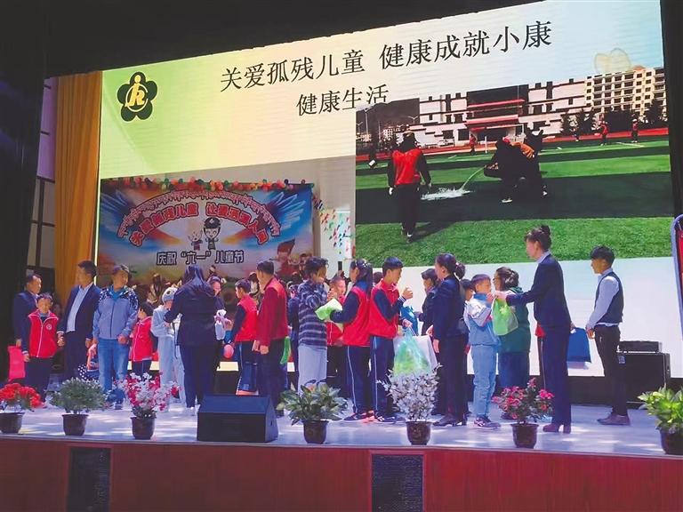 圖為在全國(guó)助殘日,全校師生開展“關(guān)愛(ài)孤殘兒童,健康成就小康”活動(dòng)。