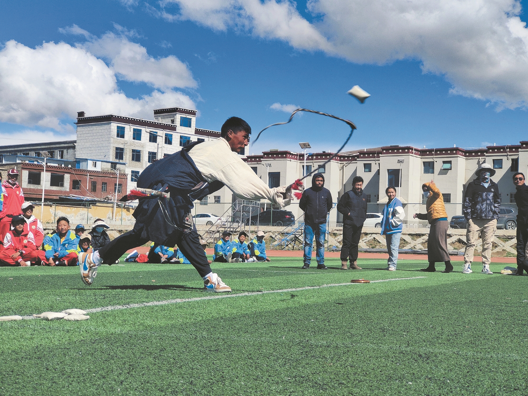 活動中,來自全縣中小學(xué)和幼兒園的學(xué)生分別參加了藏漢文書法、朗讀、歌舞、寫作、繪畫等比賽以及羊拐、“吾多”等傳統(tǒng)競技項目。比賽中學(xué)生們熱情激昂、各展身手,一個個朝氣蓬勃的身影、一件件獨具特色的作品,展現(xiàn)著牧區(qū)兒女拼搏上進的精神風(fēng)貌?!拔以诩曳叛虻臅r候經(jīng)常用‘吾多’,沒想到今天能有展示這個技能的機會,非常高興。”“吾多”參賽選手白瑪頓旦說。