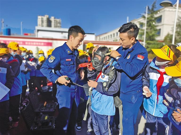 圖為拉薩市堆龍德慶區(qū)姜昆黃小勇希望小學(xué)少先隊(duì)開(kāi)展“走進(jìn)消防救援隊(duì) 零距離體驗(yàn)消防”活動(dòng)。記者 張宇 通訊員 蘭佳琪 攝
