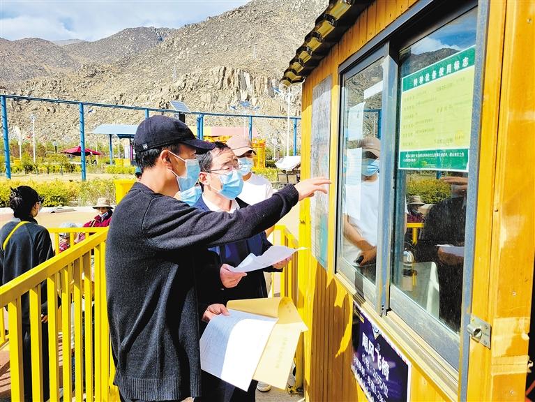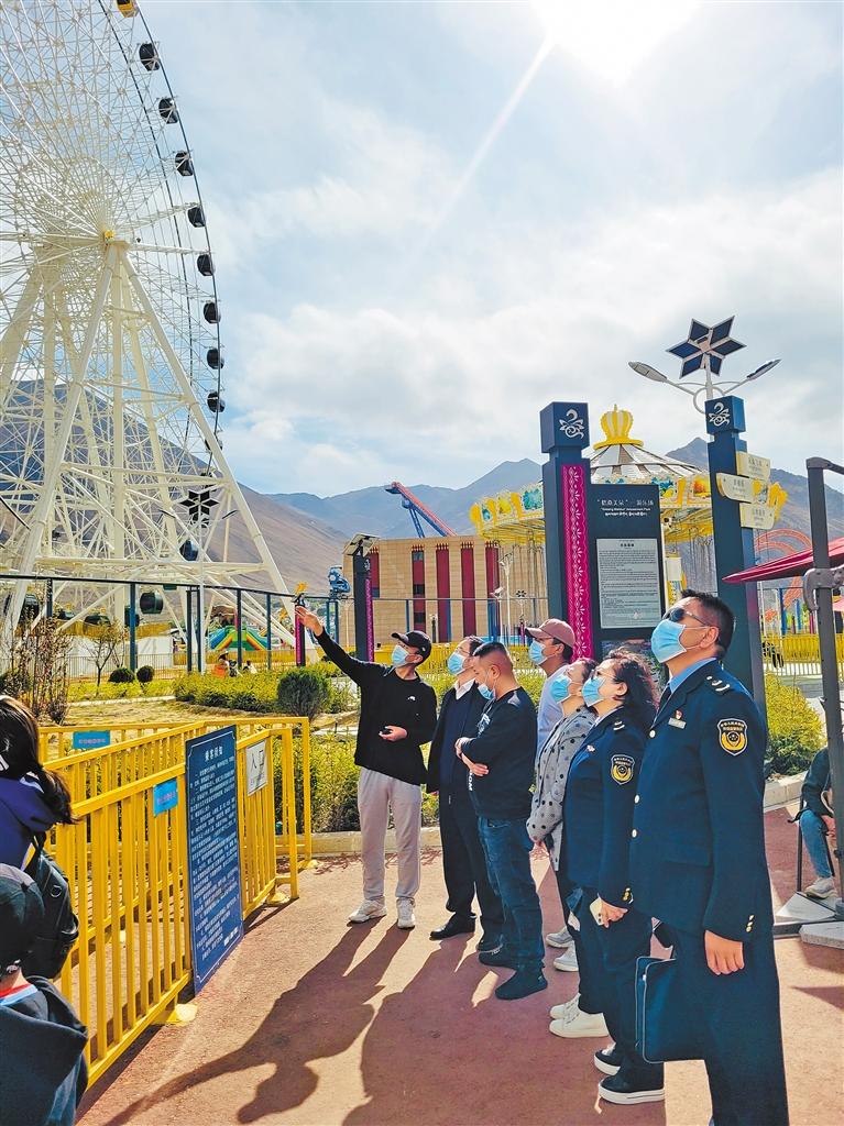 圖為拉薩市市場(chǎng)監(jiān)督管理局執(zhí)法人員在游樂場(chǎng)等客流量集中的場(chǎng)所進(jìn)行抽查。