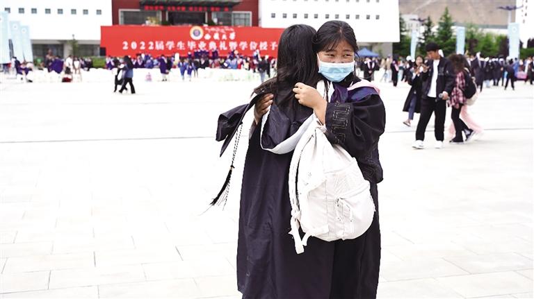 現(xiàn)場(chǎng),畢業(yè)生們依依不舍。隨著西藏大學(xué)校歌的響起,該校2022屆學(xué)生畢業(yè)典禮暨學(xué)位授予儀式落下帷幕,畢業(yè)生們即將帶著自己的成長(zhǎng)感悟離開(kāi)西藏大學(xué),開(kāi)始新的征程。