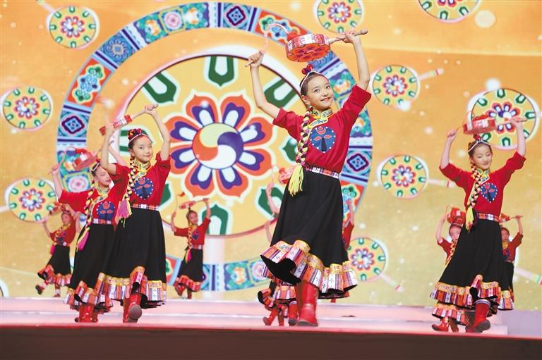 圖為拉薩市實(shí)驗(yàn)小學(xué)的學(xué)生表演《格?;ㄩ_向未來》文藝節(jié)目。記者 格桑倫珠 攝