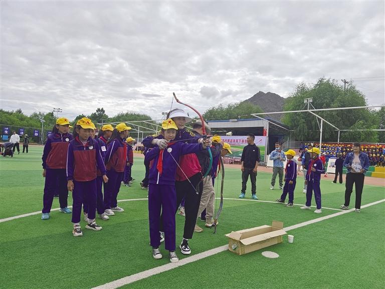 近日,由西藏自治區(qū)體育局主辦,自治區(qū)社體中心承辦,自治區(qū)馬術(shù)協(xié)會和曲水縣達嘎鎮(zhèn)小學協(xié)辦的2022年送民族傳統(tǒng)體育下基層活動走進拉薩市曲水縣達嘎鎮(zhèn)小學。校園操場上,學生們精神抖擻、全神貫注,立身對靶,手握弓把正中央,在老師的號令聲中,拉動弓弦,利箭破風而出,命中靶位……