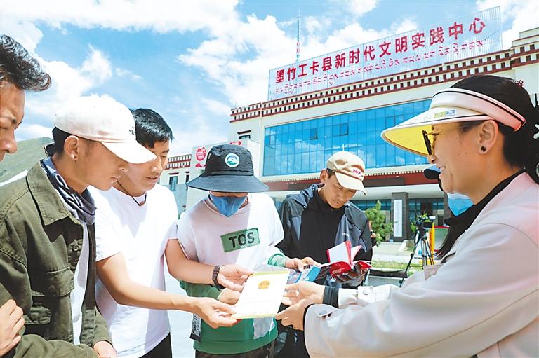 近日,墨竹工卡縣開(kāi)展新時(shí)代文明實(shí)踐志愿服務(wù)活動(dòng)。在活動(dòng)現(xiàn)場(chǎng),各參與單位為群眾發(fā)放宣傳手冊(cè)、書(shū)籍和雨傘、水杯等物品,向群眾宣傳講解相關(guān)知識(shí),還以免費(fèi)理發(fā)、免費(fèi)修電腦等方式為現(xiàn)場(chǎng)群眾開(kāi)展了送溫暖、送科技、送法律活動(dòng),進(jìn)一步提高了群眾對(duì)各項(xiàng)政策的知曉度,豐富了群眾的文化生活。