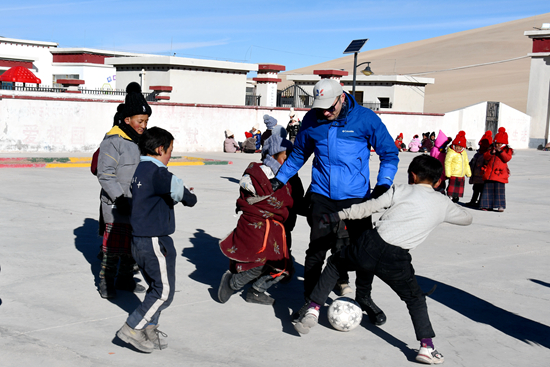 體育教師施剛強(qiáng)在課堂上注意到,藏族孩子比較害羞、靦腆,為了讓學(xué)生們活躍起來,他在課上安排了各種團(tuán)體游戲和比賽,讓每個(gè)孩子都能在體育活動(dòng)中發(fā)揮優(yōu)點(diǎn)、享受快樂。