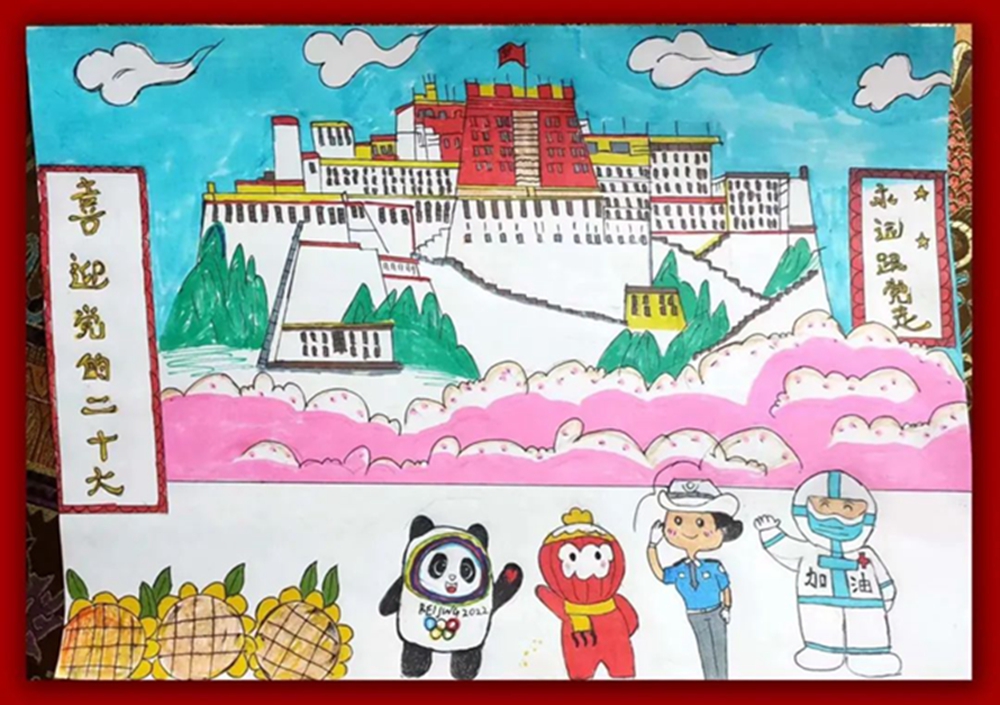中國(guó)西藏網(wǎng)訊 為慶祝黨的二十大勝利召開(kāi),西藏自治區(qū)日喀則市委宣傳部、市文化局主辦的“共慶盛會(huì) 祝福祖國(guó)”日喀則市第三屆少兒才藝大賽舉行。圖為日喀則市第三屆少兒才藝大賽美術(shù)類(lèi)獲獎(jiǎng)作品。(中國(guó)西藏網(wǎng) 圖文來(lái)源:文化日喀則微信公眾號(hào))