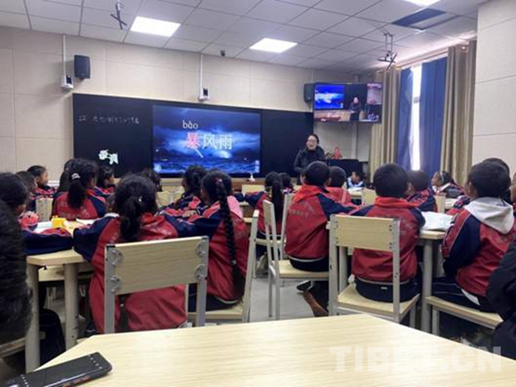 圖為西藏自治區(qū)那曲市比如縣達(dá)塘鄉(xiāng)的孩子們正通過(guò)多媒體系統(tǒng)上課 攝影:扎桑