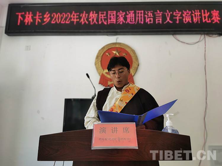 中國(guó)西藏網(wǎng)訊 近日,一場(chǎng)主題“學(xué)習(xí)宣傳貫徹黨的二十大精神、全面振興鄉(xiāng)村文化、促進(jìn)民族團(tuán)結(jié)進(jìn)步”的農(nóng)牧民國(guó)家通用語言文字演講比賽在西藏自治區(qū)昌都市左貢縣下林卡鄉(xiāng)政府舉行。