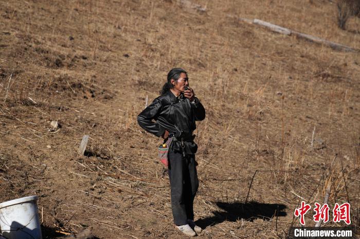 圖為丹增培楚在牧場(chǎng)使用對(duì)講機(jī)。劉冉陽(yáng) 攝