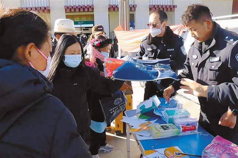7日,日喀則市禁毒辦組織警力在日喀則火車站開展以“平安春運(yùn)·禁毒同行·遠(yuǎn)離毒品·健康生活”為主題的禁毒宣傳教育活動(dòng)。