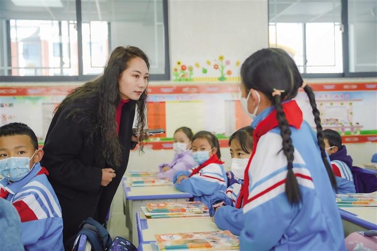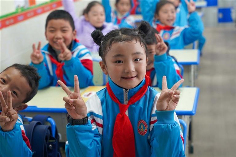 除了激動的家長,學(xué)生們的心情也很激動。在校門口,扎西旺扎和索朗培塔大老遠(yuǎn)就認(rèn)出了對方,倆人快速跑向?qū)Ψ剑m然戴著口罩,眼里卻充滿笑意?!案袅四敲淳媒K于見面了,太激動了,很想念我的好朋友。”扎西旺扎笑著說。你假期看了什么動畫片、又新學(xué)了什么東西、去哪里玩了、作業(yè)完成得如何……太久沒見了,小伙伴們再次見面,分外親熱,大家一起嬉笑打鬧著進(jìn)入校園。