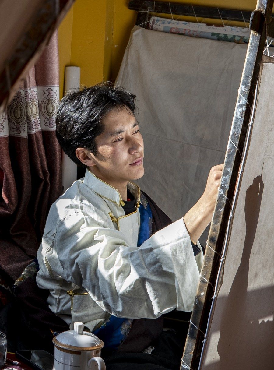 洛桑旦達今年48歲,2016年創(chuàng)辦了這間唐卡畫院,他憑借高超的技藝,不僅實現(xiàn)了自己的創(chuàng)業(yè)夢,也給更多年輕人搭建了成長平臺。