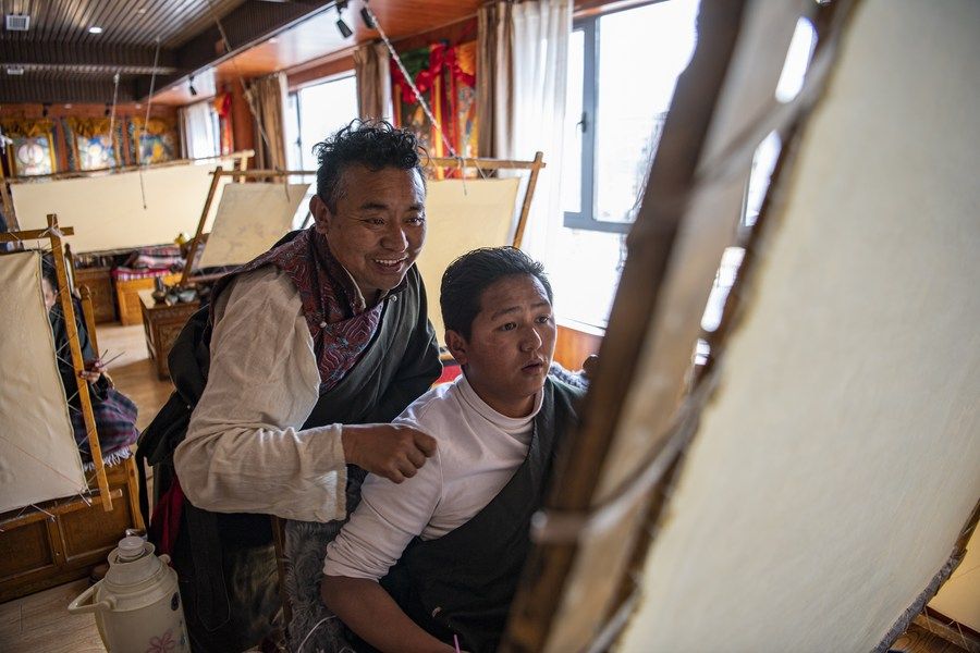 西藏日喀則:唐卡繪就五彩前程