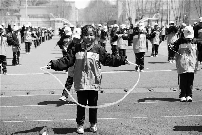 活動現(xiàn)場,同學(xué)們拿著跳繩來到操場上,調(diào)整好隊形,和著歡快的音樂節(jié)拍,跟著老師的節(jié)奏進行跳繩練習(xí),各班班主任積極鼓勵學(xué)生做到“人手一繩”并跟班指導(dǎo)。學(xué)生們舞動著彩繩,歡快地跳躍,成為學(xué)校大課間一道靚麗的風(fēng)景。