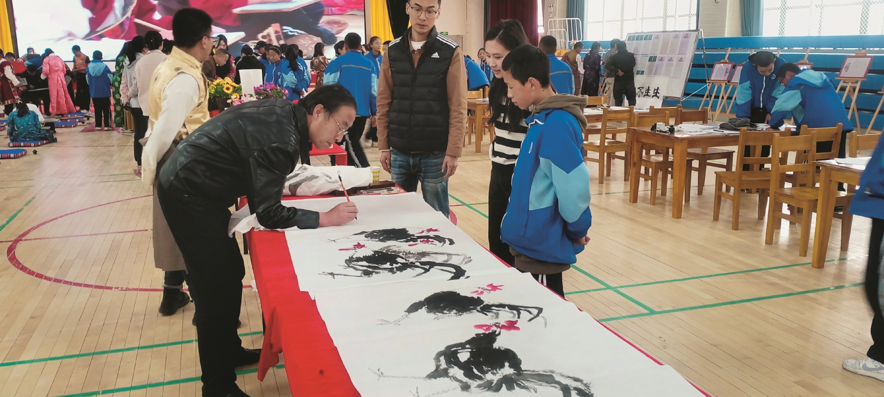 活動(dòng)為拉薩市柳梧初級中學(xué)愛好書法的師生提供了一個(gè)展現(xiàn)自我價(jià)值的平臺,為充分展現(xiàn)中國書畫藝術(shù)魅力、繼承和弘揚(yáng)傳統(tǒng)的國粹文化藝術(shù),藝術(shù)家們揮毫潑墨,現(xiàn)場演繹國畫和書法經(jīng)典,以提升廣大師生的藝術(shù)修養(yǎng)和審美情趣,激發(fā)大家研學(xué)書法的興趣和愛好。