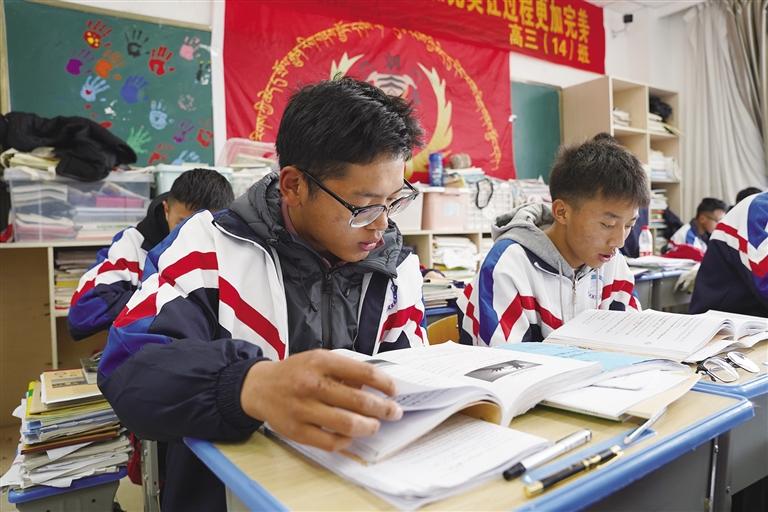 “叮鈴鈴”……隨著下課鈴聲響起,教室瞬間“熱鬧”了起來。有的同學(xué)走出教室活動久坐的身體、有的同學(xué)拿出習(xí)題冊和同桌小聲地討論、有的同學(xué)向老師請教不明白的知識點……清風(fēng)拂過,暖暖的陽光照在這些青春的身影上,演繹出一首屬于青春的奮斗頌歌?!艾F(xiàn)在是最緊要的關(guān)頭,必須把全部精力投入到學(xué)習(xí)中,爭取多掌握一些知識點?!备呷?2班學(xué)生索朗旦增說,“我的目標(biāo)是西南政法大學(xué),希望通過自己的努力能實現(xiàn)這個夢想?!?/p>