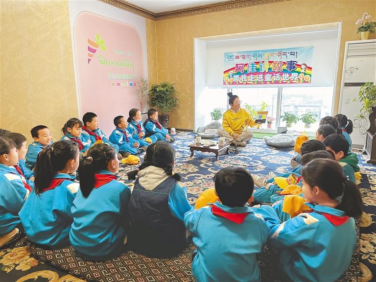 圖為孩子們?cè)谡J(rèn)真聽(tīng)故事。記者 格桑倫珠 攝