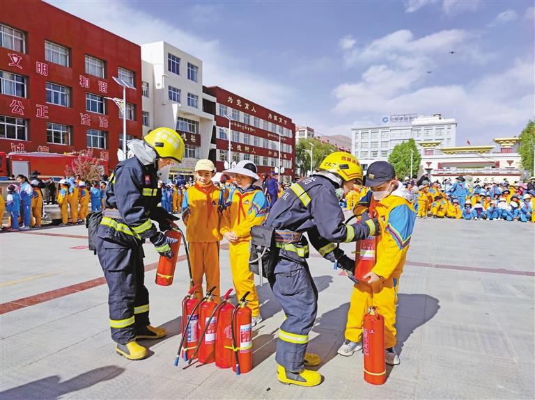 近日,日喀則市減災委員會在日喀則市小學開展了“防災減災進校園”主題活動?;顒又校乐笐?zhàn)員向師生詳細講解了消防裝備用途和用法,并組織師生開展消防應急疏散演練。沉浸式、互動式、體驗式的防災減災宣傳,進一步增強了師生消防安全意識,提高了應急避險、自救互救能力。