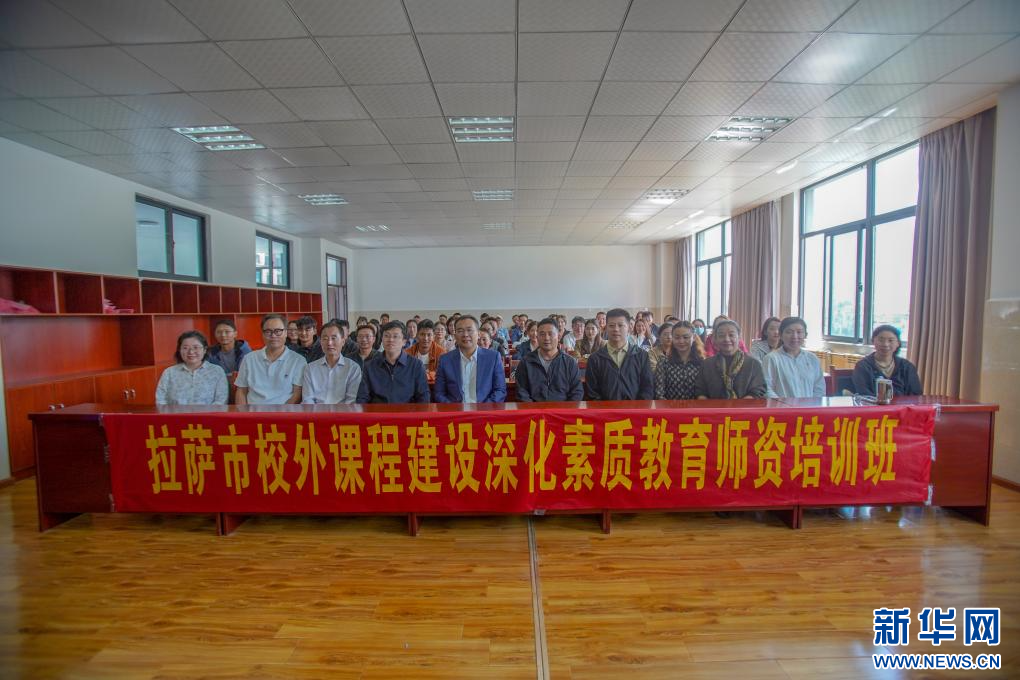 拉薩市校外課程建設(shè)深化素質(zhì)教育師資培訓(xùn)班現(xiàn)場合影(8月23日攝)。新華社記者 邵澤東 攝
