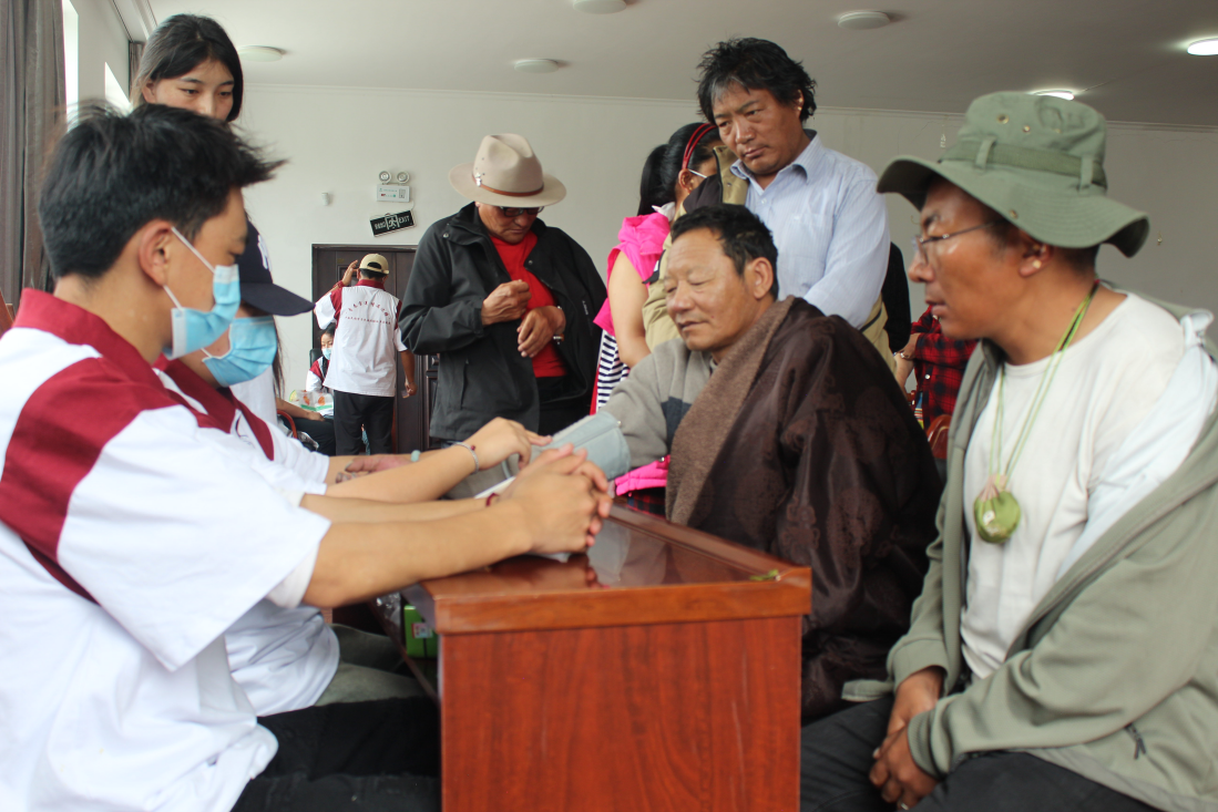 活動期間,“民族團結(jié)返鄉(xiāng)實踐團”師生先后到森布日高海拔生態(tài)搬遷安置點和那曲駐拉薩辦事處等,與西藏防治艾滋病協(xié)會工作人員共同開展“中醫(yī)藥健康進西藏 民族團結(jié)我先行”的愛心醫(yī)療志愿服務,為當?shù)乩习傩蘸屠细刹块_展針對性的中醫(yī)藥知識宣講,還為大家測血壓、血糖,共同體驗中醫(yī)藥花茶及香囊的制作過程,免費發(fā)放藥物等。