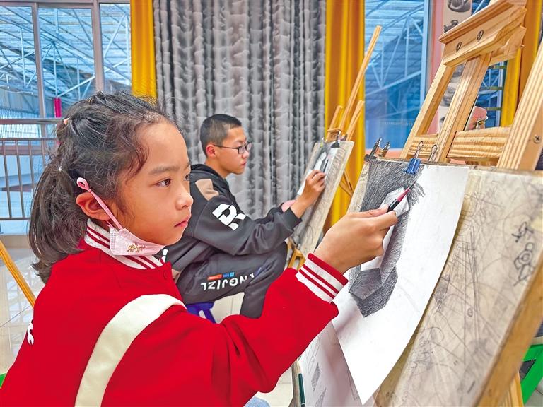 日前,記者在走訪少年宮時看到,無論是教室里,還是操場上,處處充滿了活力。在書法教室里,孩子們一筆一畫寫得有模有樣;美術(shù)教室里,孩子們畫畫用色天馬行空,童趣躍然紙上;鋼琴教室里,孩子們撥動琴弦,樂曲聲悄然而起;足球場上,孩子們肆意揮灑、酣暢淋漓……雖然身處不同的場所,但孩子們的臉上都洋溢著快樂的神情。