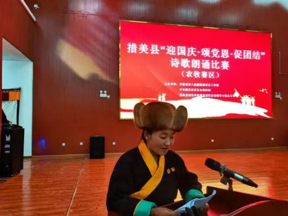 圖為措美縣舉辦“迎國(guó)慶 頌黨恩 促團(tuán)結(jié)”詩(shī)歌朗誦比賽。(受訪者供圖)