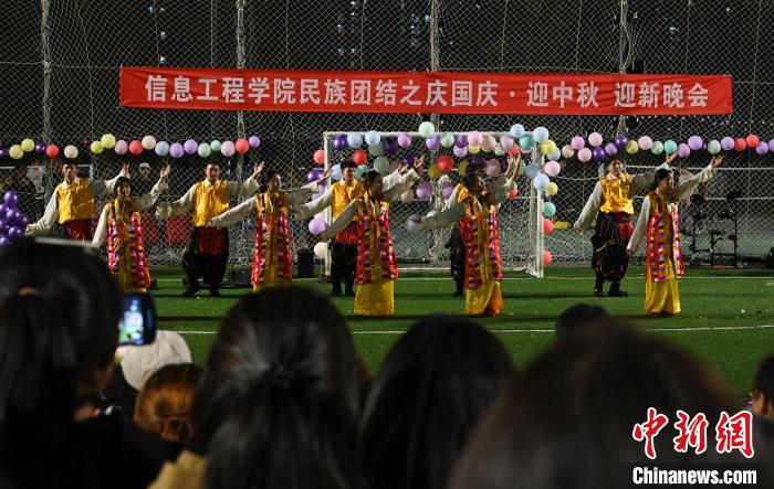 圖為2023年9月,藏族學(xué)生在迎新晚會上表演節(jié)目。趙朗 攝