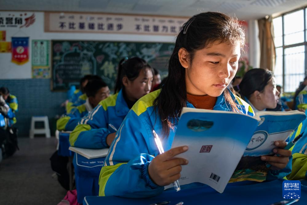 斯曲卓瑪在上藏文課(11月10日攝)。新華社記者 孫非 攝