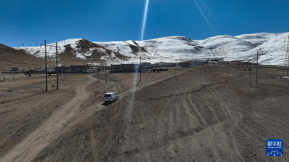 斯曲卓瑪?shù)母赣H開(kāi)車(chē)把女兒接回家中(11月15日攝,無(wú)人機(jī)照片)。新華社記者 晉美多吉 攝