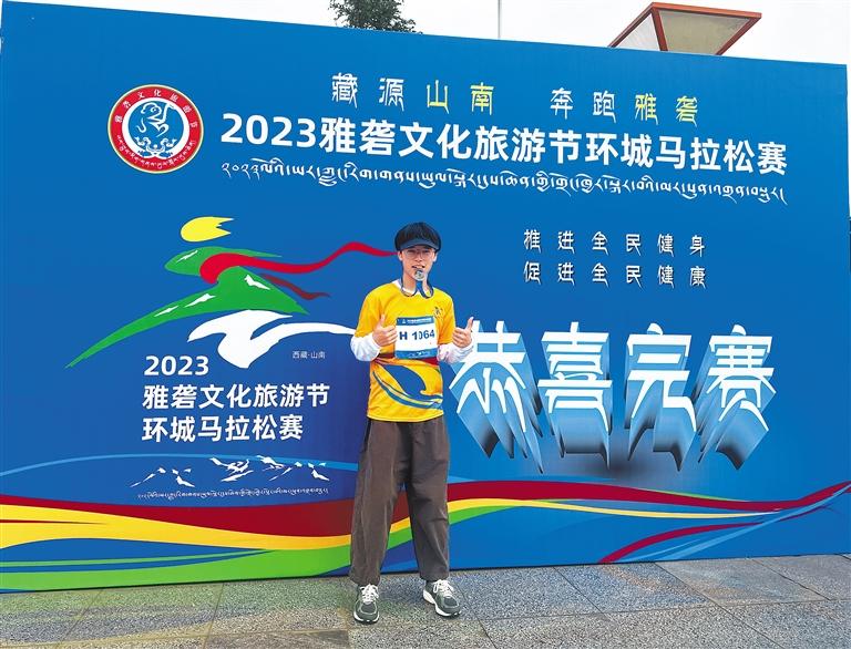 圖為蘇子洋在2023雅礱文化旅游節(jié)環(huán)城馬拉松賽活動(dòng)中,以志愿者的身份為參賽選手服務(wù)。記者 武沛濤 攝