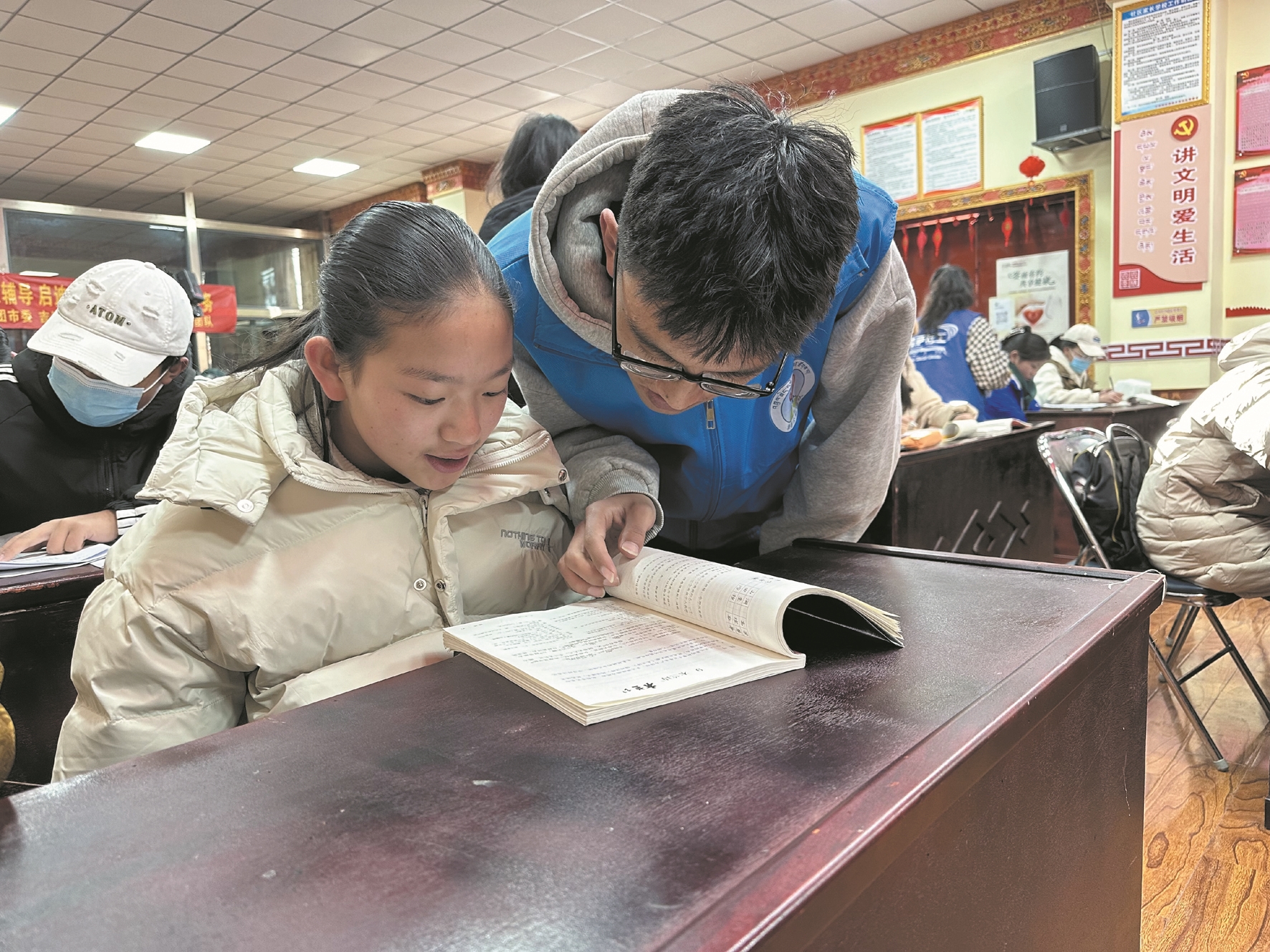 寒假期間,不少家長因?yàn)闆]辦法輔導(dǎo)孩子的日常學(xué)習(xí)而感到苦惱。前不久,吉崩崗街道聯(lián)合市團(tuán)委、摯善公益團(tuán)隊(duì)在熱木其社區(qū)居委會里設(shè)立了一個(gè)臨時(shí)“教室”,為轄區(qū)孩子們提供為期一個(gè)月的課業(yè)輔導(dǎo)志愿服務(wù)?,F(xiàn)場,返鄉(xiāng)大學(xué)生志愿者們變身為一名名“小老師”,耐心幫助孩子們解決學(xué)習(xí)難題,輔導(dǎo)的課業(yè)涵蓋了小學(xué)、初中的所有科目。除了教作業(yè),志愿者還組織孩子們開展演講比賽、書法比賽等活動,充實(shí)了孩子們的假期生活。