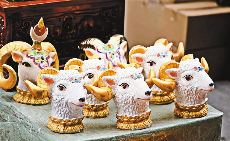 塑彩羊頭在藏語(yǔ)中稱為“隆果”,在雪域亙古浩瀚的歷史中,高原兒女自古以來便認(rèn)定羊是吉祥的動(dòng)物,代表了藏族群眾祈盼來年五谷豐登、六畜興旺。