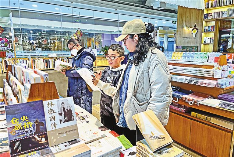 圖為寒假期間,家長(zhǎng)帶著孩子來到拉薩某書店選購(gòu)書籍。記者 旦增蘭澤 攝
