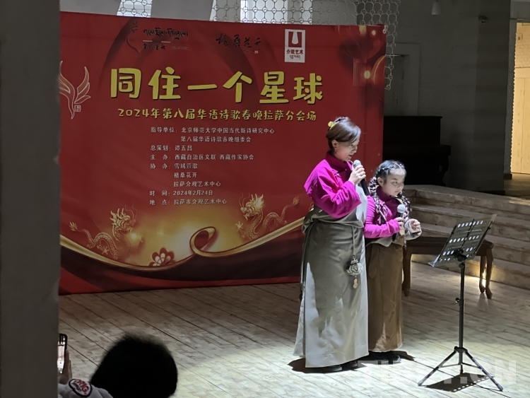 中國西藏網(wǎng)訊 2月24日元宵節(jié)之夜,以“同住一個星球”為主題的“2024年第八屆華語詩歌春晚拉薩分會場詩歌朗誦會”在拉薩介觀藝術(shù)中心舉行。此次活動由西藏作家協(xié)會主辦、雪域萱歌、格?;ㄩ_、拉薩介觀藝術(shù)中心協(xié)辦。