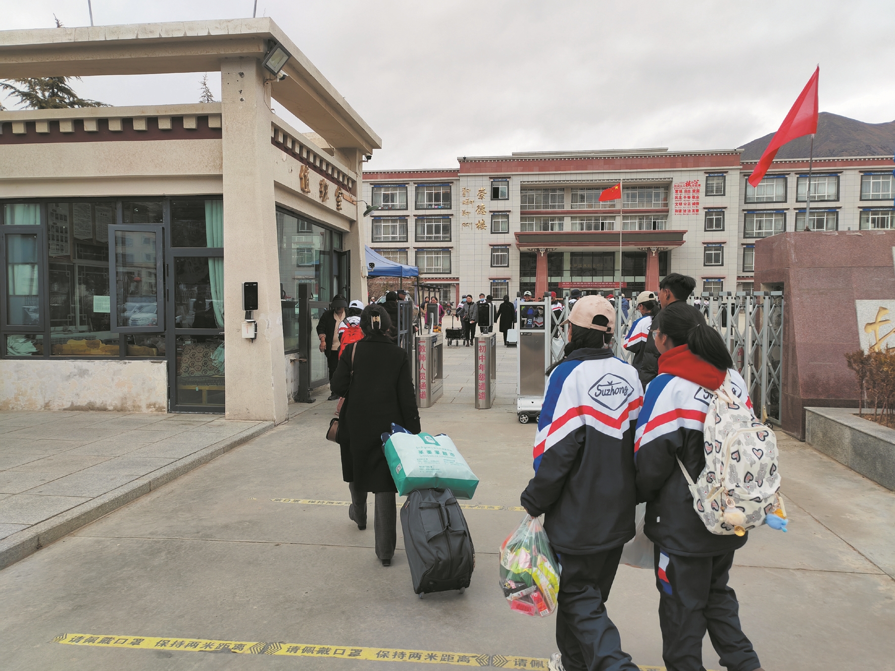 圖為2月27日下午,拉薩江蘇實(shí)驗(yàn)中學(xué)學(xué)生返校報(bào)到。拉薩融媒記者 齊永昌攝