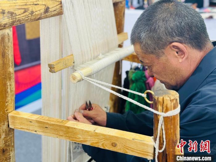 圖為國家鄉(xiāng)村工匠名師現(xiàn)場編織藏毯。中新網記者 孫睿 攝