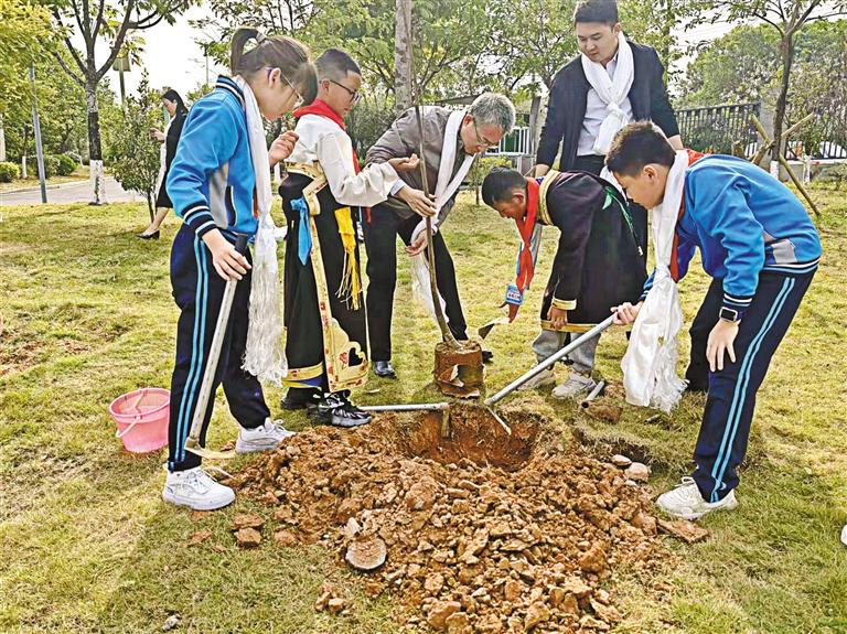 圖為“莞宜情·山海行”莞宜各族青年互訪交流活動中,東莞、巴宜兩地青少年共同種下團(tuán)結(jié)之樹。