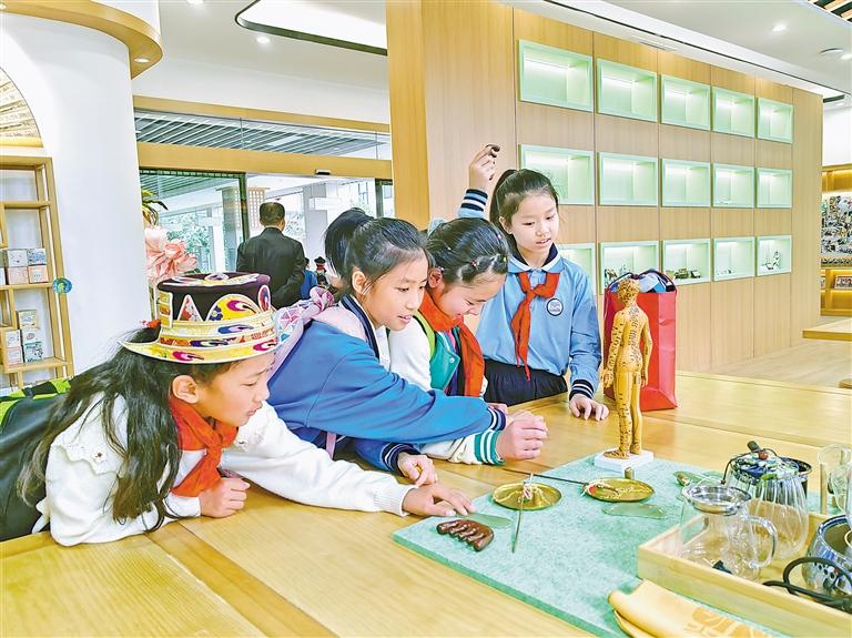 圖為冬令營活動中,東莞、巴宜兩地青少年一同了解中醫(yī)藥文化。