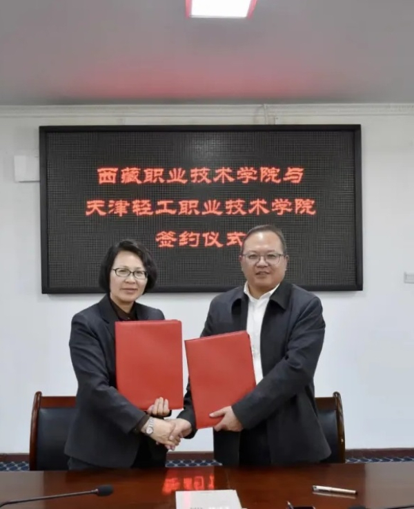 職業(yè)教育活動周期間,天津輕工職業(yè)技術學院黨委副書記、院長李云梅一行應邀赴西藏職業(yè)技術學院考察交流,指導該院“新雙高”申報以及國家級職業(yè)教育教師創(chuàng)新團隊建設,并代表學校與西藏職業(yè)技術學院簽署合作協(xié)議。西藏職業(yè)技術學院黨委副書記、院長陳飛,黨委委員、副院長徐斌等出席了簽約儀式。
