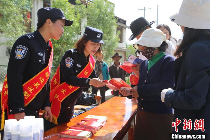 圖為西藏邊檢總站執(zhí)法調(diào)查支隊(duì)民警向民眾普及《民法典》知識(shí)。徐錫萬(wàn) 攝