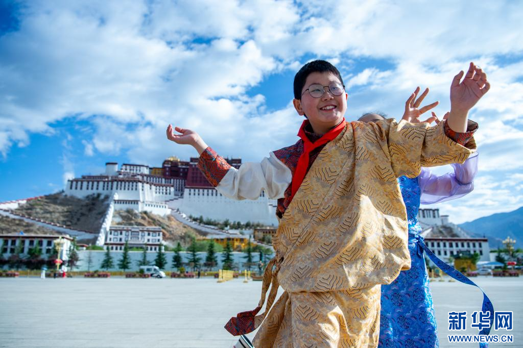 “六一”國際兒童節(jié),小朋友們?cè)谖鞑刈灾螀^(qū)拉薩市布達(dá)拉宮廣場(chǎng)歡慶自己的節(jié)日。