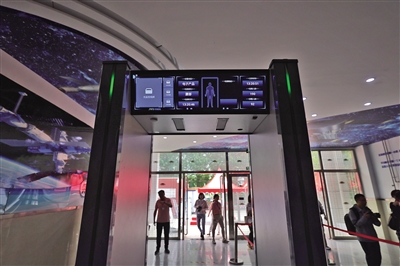 北航實驗學??键c,升級后的智能安檢門。新京報記者 李木易 攝