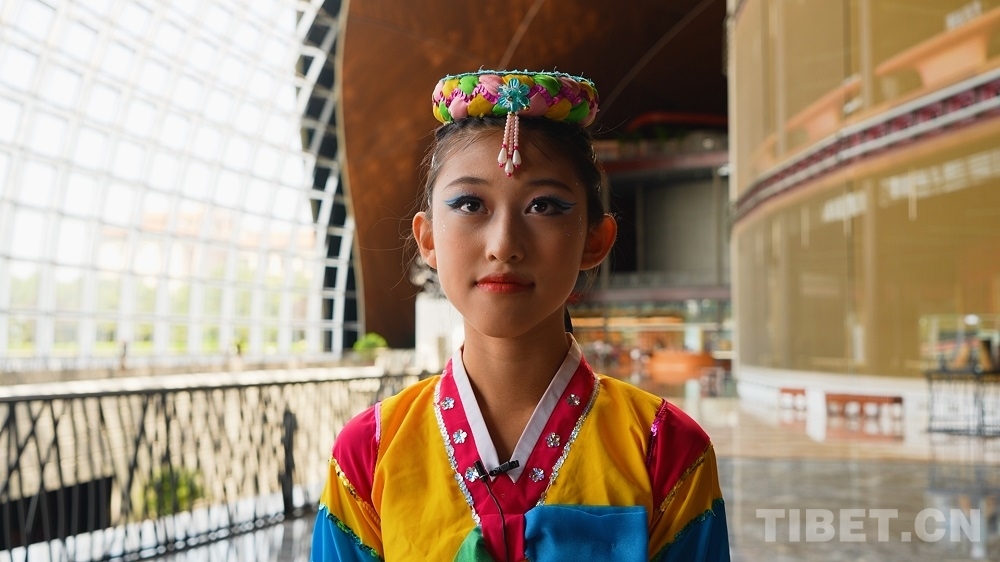 隨后,同學(xué)們相繼帶來多民族舞蹈展演,不僅有苗族舞蹈《岜沙獵人》、土家族舞蹈《阿達(dá)畢的心聲》,還有朝鮮族舞蹈《嬉舞泉韻》、漢族舞蹈《青傘映紅妝》、蒙古族舞蹈《美麗的草原我的家》、維吾爾族舞蹈《錦繡中華》和藏族舞蹈《歡樂牧民生活》等民族舞蹈串燒,演出熱烈歡快、獨(dú)具特色,讓觀眾們感受到我國(guó)各民族舞蹈的藝術(shù)特色和人們對(duì)美好生活的熱愛與期待。來自北京市航天圖強(qiáng)小學(xué)的蔡雨桐對(duì)記者表示,此次能夠跟西藏來的同學(xué)們一起朝夕相處、排練節(jié)目,讓她深刻感受到漢藏文化的交流交融?!拔覀兿嗵幍檬秩谇ⅲ谌粘I钪形乙舱J(rèn)識(shí)了很多藏族的小朋友,回去之后我們還會(huì)繼續(xù)通過書信聯(lián)系保持溝通,她們的淳樸、善良給我留下了深刻的印象?!?/p>
