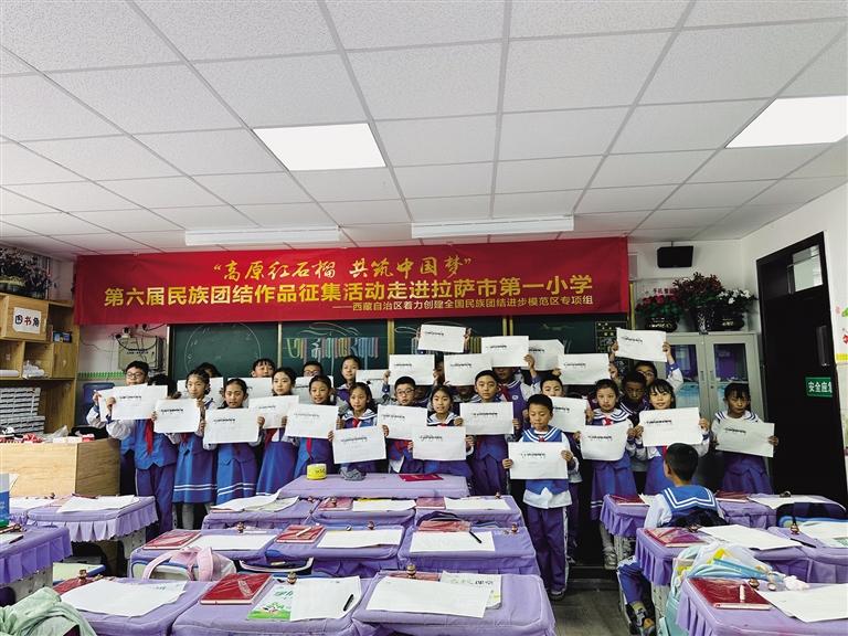 為進(jìn)一步豐富第六屆民族團(tuán)結(jié)書法、美術(shù)、攝影、微視頻作品征集活動(dòng)的內(nèi)容和形式,弘揚(yáng)傳統(tǒng)文化,激發(fā)學(xué)生對(duì)書法藝術(shù)的熱愛之情,7月5日下午,由西藏自治區(qū)著力創(chuàng)建全國民族團(tuán)結(jié)進(jìn)步模范區(qū)專項(xiàng)組主辦,西藏自治區(qū)黨委宣傳部、西藏自治區(qū)民族事務(wù)委員會(huì)協(xié)辦,西藏傳媒集團(tuán)有限公司承辦的第六屆民族團(tuán)結(jié)書法、美術(shù)、攝影、微視頻作品征集活動(dòng)走進(jìn)拉薩市第一小學(xué),為同學(xué)們帶來了一堂生動(dòng)的藏文書法課。