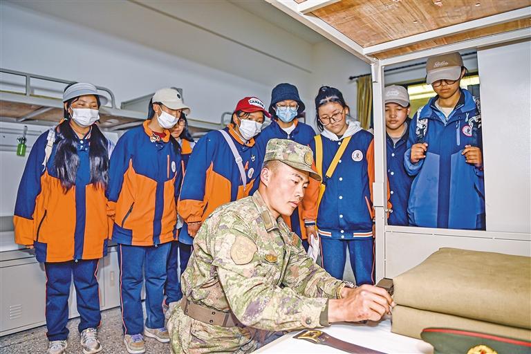 圖為八一建軍節(jié)前夕,西藏日喀則軍分區(qū)聯(lián)合日喀則市委宣傳部開展“強(qiáng)國(guó)復(fù)興有我”系列軍旅活動(dòng),組織青少年學(xué)生零距離感受軍營(yíng)風(fēng)采,切實(shí)提高國(guó)防意識(shí),激發(fā)愛(ài)國(guó)主義情懷。這是學(xué)生們參觀官兵宿舍。通訊員 馮千恩 劉煜欽 記者 楊子彥 攝
