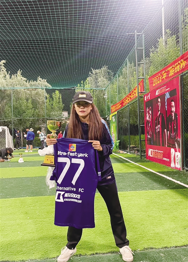 而最能證明她們訓(xùn)練成果的就是足球聯(lián)賽。?。玻埃玻衬辍坝卤笨徜J運(yùn)動(dòng)拉薩業(yè)余足球5人制(女子組)比賽、第二屆“亞克杯”女子5人制交流賽在拉薩開(kāi)賽,這也是西藏少有的女足賽事。米央以拉薩另類(lèi)女子足球隊(duì)隊(duì)員身份參賽,盡管米央是隊(duì)內(nèi)年紀(jì)最小的成員,但她的能力絲毫不遜于任何人。米央所在的這支由高中生、大學(xué)生等組成的隊(duì)伍,經(jīng)過(guò)10場(chǎng)比賽,拼盡全力最終奪得冠軍。“每當(dāng)足球在我腳下滾動(dòng)飛躍,每當(dāng)我奔跑在綠茵場(chǎng)上,那種肆意和快樂(lè)讓我堅(jiān)定我的選擇,我的夢(mèng)想是踢進(jìn)中國(guó)國(guó)家女子足球隊(duì)?!泵籽胝f(shuō)。雖然她與夢(mèng)想還有距離,但內(nèi)心那股熊熊燃燒的信念力量,成為她刻苦訓(xùn)練的“定心丸”。