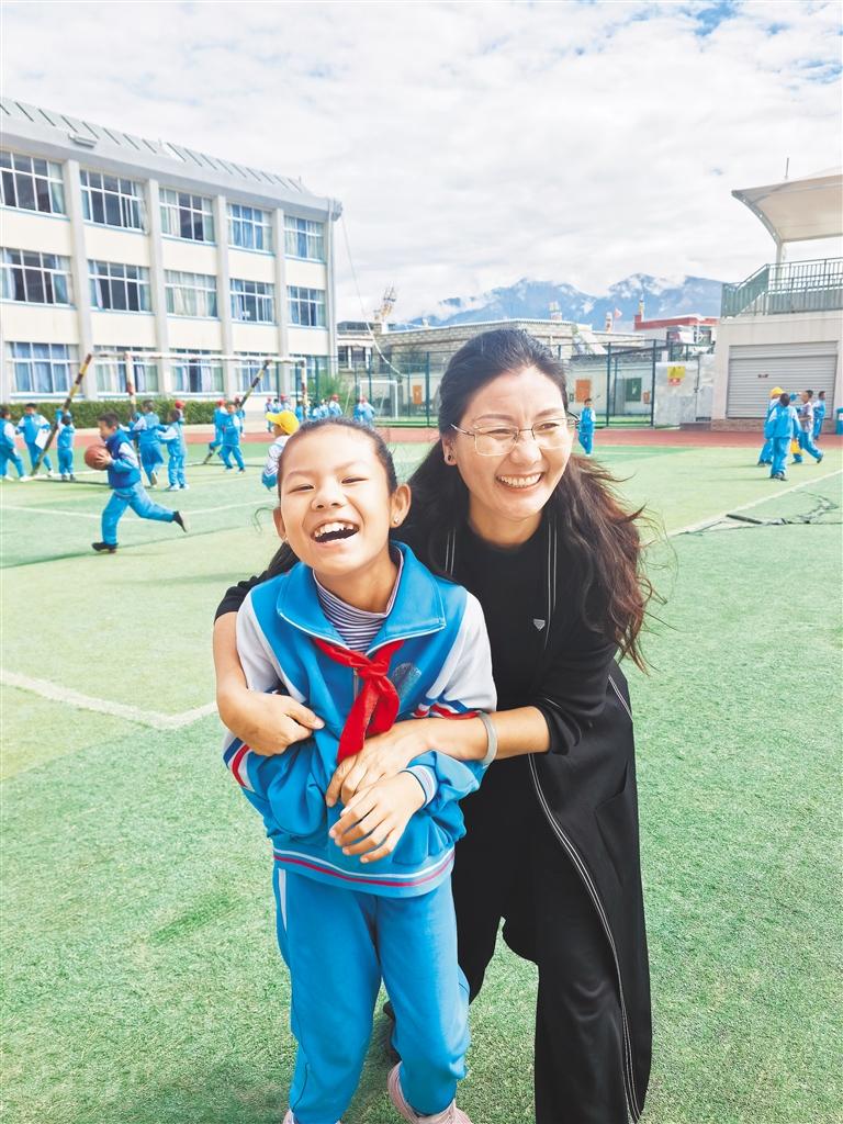 圖為卓瑪與學(xué)生在一起快樂互動。