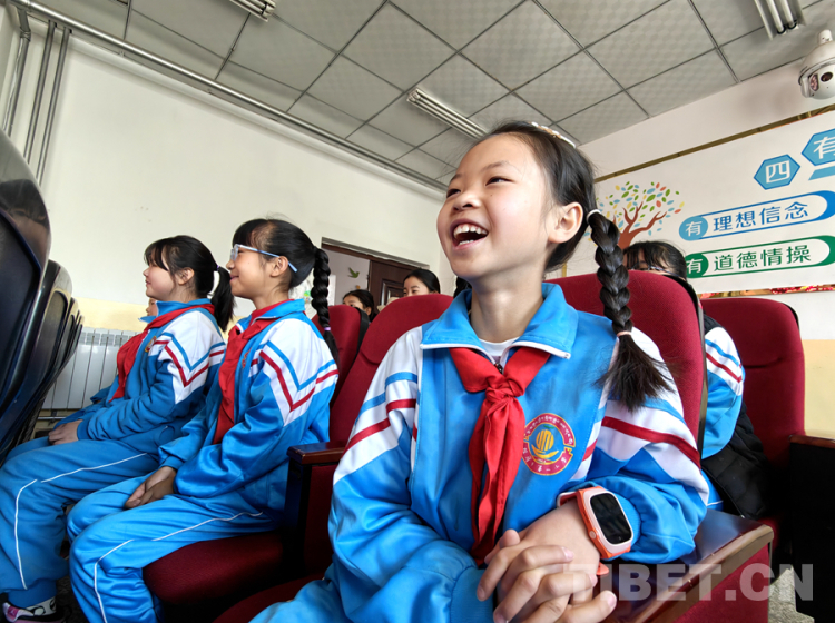 圖為4月23日,西藏自治區(qū)新華書店在拉薩市城關(guān)區(qū)海淀小學(xué)開展的“享受閱讀 讓夢飛翔”閱讀校園行活動(dòng)互動(dòng)環(huán)節(jié),有趣的互動(dòng)把小學(xué)生給逗樂了 攝影:次旦拉姆