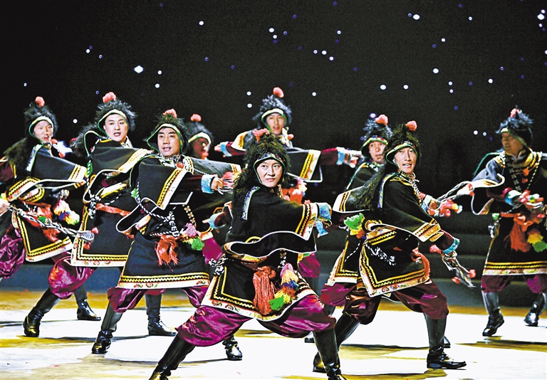 演員表演夏爾巴傳統(tǒng)舞蹈。記者 王敏 攝